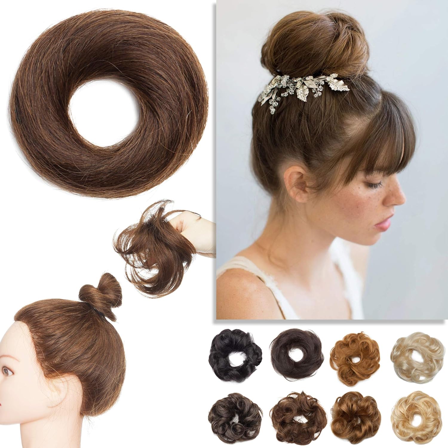 Amazon Com S Noilite Messy Hair Buns Hair Piece 100 Real Human Hair Elegant Chignons For Women Kids Wedding Instant Updos Hair Scrunchies Medium Brown 1pcs 4 Beauty